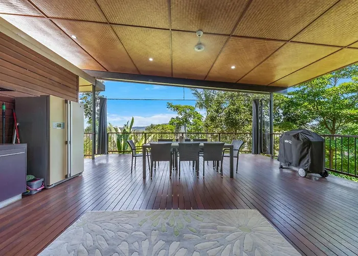 Hilltop Viewsヴィラは珊瑚海景色を眺める4室のベッドルームへ顧客を誘います。 ヴィラには1のバスルームと台所が付いています。